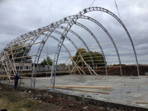 Арочная конструкция на сегодняшний день остается самой востребованной и доступной из всех видов, по причине простоты и скорости монтажа, поскольку все элементы проходят сборку на предприятии, в процессе изготовления. На месте производится сборка крупных элементов (арочных ферм) в единое целое, что существенно ускоряет сроки сдачи объекта в эксплуатацию.